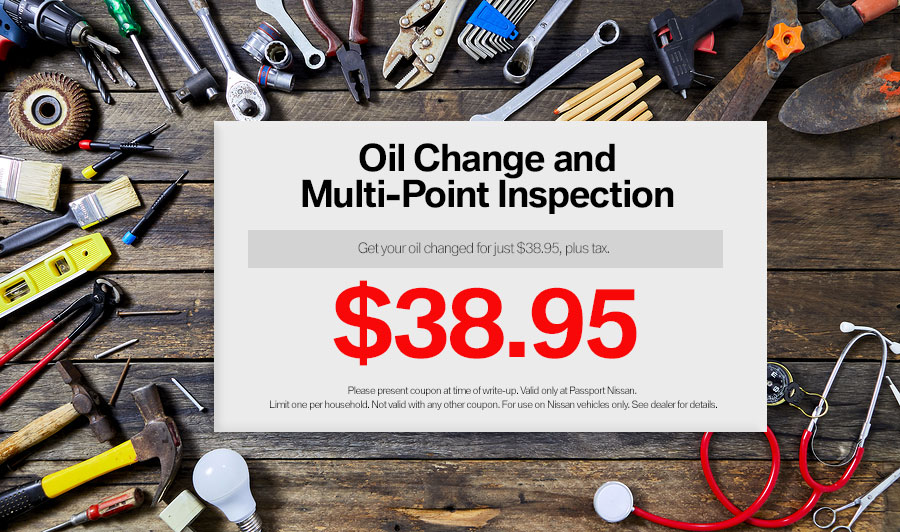 Please present coupon at time of write-up. Valid only at Passport Nissan. Limit one per household. Not valid with any other coupon. For use on Nissan vehicles only. See dealer for details.
