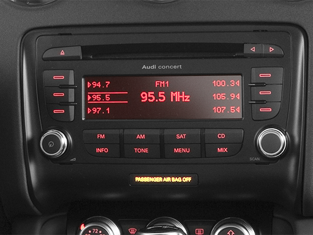 - Radio: Audi Concert AM/FM/SAT w/CD Player -inc: MP3 reading capability, presets, phase diversity for improved AM/FM reception, 255 watt amplifier, RDS (Radio Data System) displays radio station call letters and other information, GALA (Graduated Audio Level Adjustment) which varies volume based on vehicle speed, theft deterrent design and 12 speaker Bose sound system w/AudioPilot including center speaker and subwoofer
