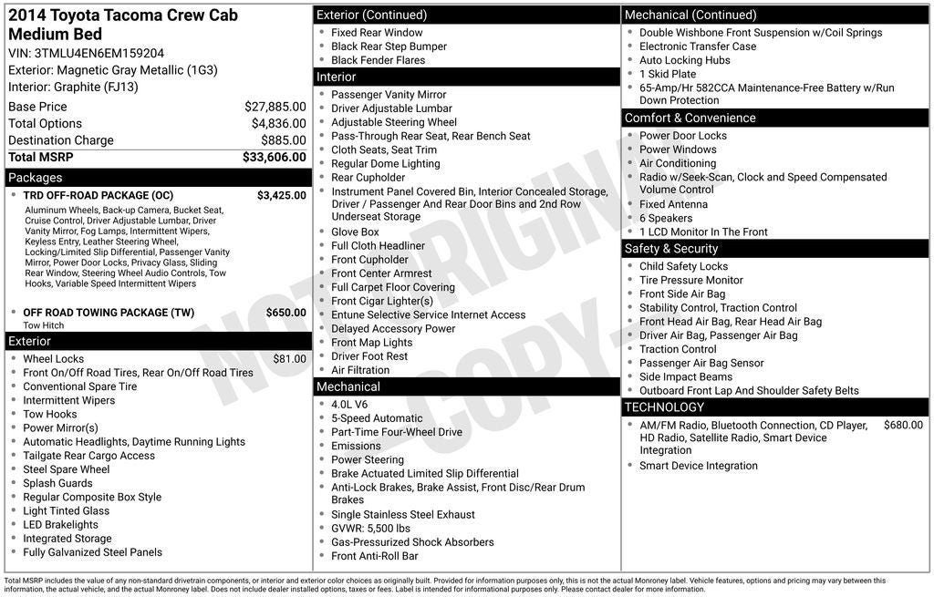 - Vehicle Name: Toyota Tacoma