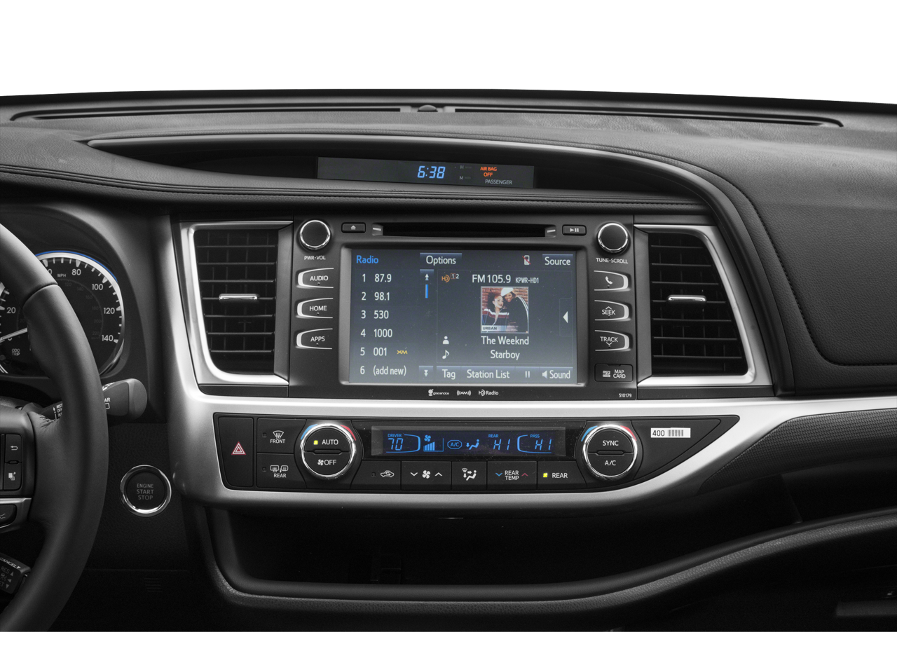 - Radio: Entune Premium Audio w/Nav & App Suite -inc: the Entune Multimedia Bundle (8" high resolution touch-screen w/split screen display, AM/FM CD player, MP3/WMA playback capability, 6 speakers, auxiliary audio jack, USB 2.0 port w/iPod connectivity and control, advanced voice recognition, hands-free phone capability, phone book access and music streaming via Bluetooth® wireless technology), Siri Eyes Free, Entune App Suite, Intelligent Touch controls, SiriusXM Satellite Radio w/3-month complimentary SirusXM All Access trial, HD Radio, HD Radio predictive traffic and Doppler weather overlay, AM/FM cache radio, Gracenotes album cover art and integrated back up camera display w/projected path