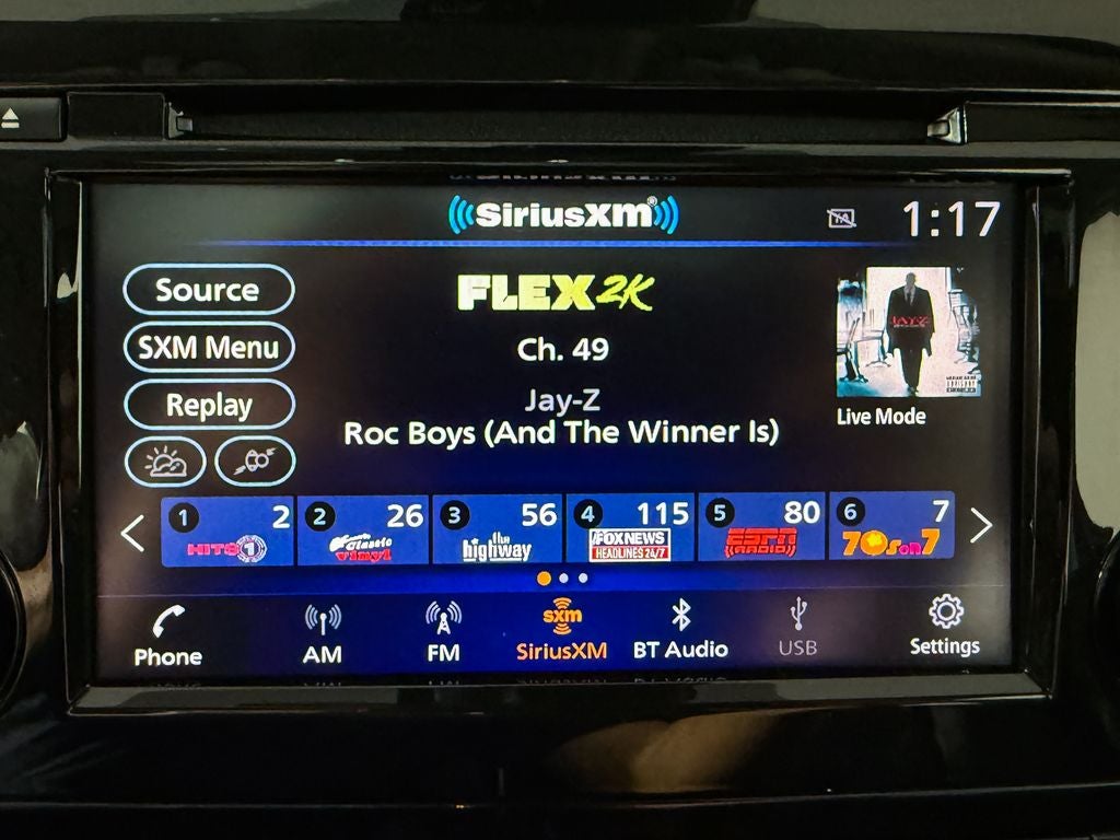 - Radio: AM/FM NissanConnect w/Navigation -inc: Nissan door-to-door navigation, SiriusXM Traffic, SiriusXM Travel Link, 7" color touch-screen display w/multi-touch control, Apple CarPlay, Android Auto, SiriusXM satellite radio, Bluetooth® hands-free phone system, streaming audio via Bluetooth® and hands-free text messaging assistant