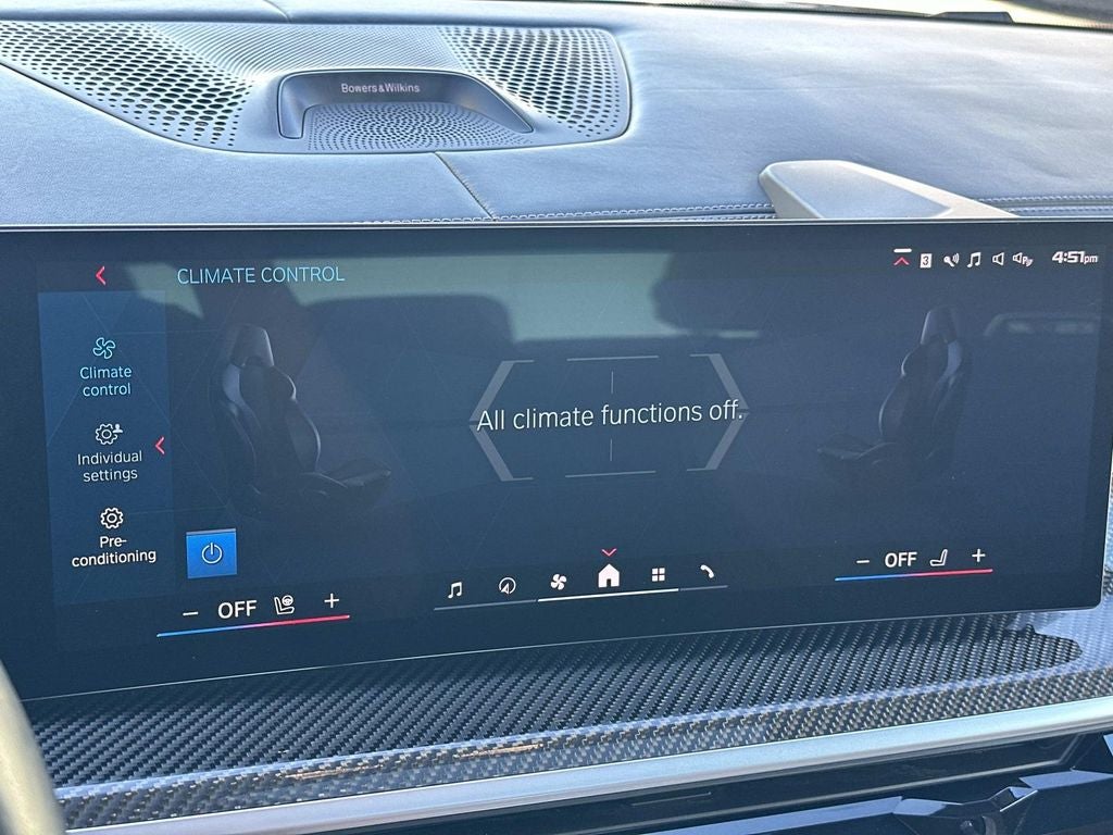 *Navigation*, *Bluetooth®*, *Power Sunroof/Moonroof*, *Heated & Cooled Front Seats*, *Rear View Camera*, *SIRUIS Satellite Radio*, *Blind Spot Sensors*, 16 Speakers, Alloy wheels, AM/FM Stereo, Apple CarPlay & Android Auto Compatibility, BMW Assist eCall, BMW TeleServices, Bowers & Wilkins Diamond Surround Sound System, Connected Package Pro, ConnectedDrive Services, Executive Package, Front & Rear Heated Seats, Front Massaging Seats, Front Ventilated Seats, Gesture Control, Heads-Up Display, Heated & Cooled Cupholders, Live Cockpit Pro, Memory seat, Navigation System, Panoramic Sky Lounge LED Roof, Personal eSIM 5G, Power driver seat, Rear Manual Side Window Shades, SiriusXM w/360L & 1 Yr Platinum Plan Subscription, Soft-Close Automatic Doors, Wheels: 21 x 10.5 Fr & 22 x 11.5 Rr Black, Wireless Device Charging.