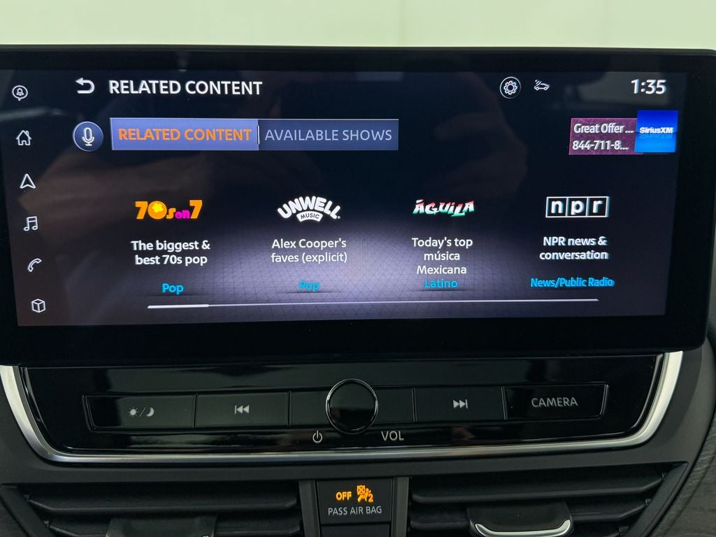 - Radio: AM/FM Audio System -inc: RDS, MP3 and aux-in, 6 speakers, NissanConnect featuring Apple CarPlay, Android Auto, 8" color display w/multi-touch control, 1 front illuminated USB port (type-C) for compatible devices, SiriusXM radio, Bluetooth® hands-free phone system, streaming audio via Bluetooth®, hands-free text messaging assistant, Siri Eyes Free and Google Assistant voice recognition